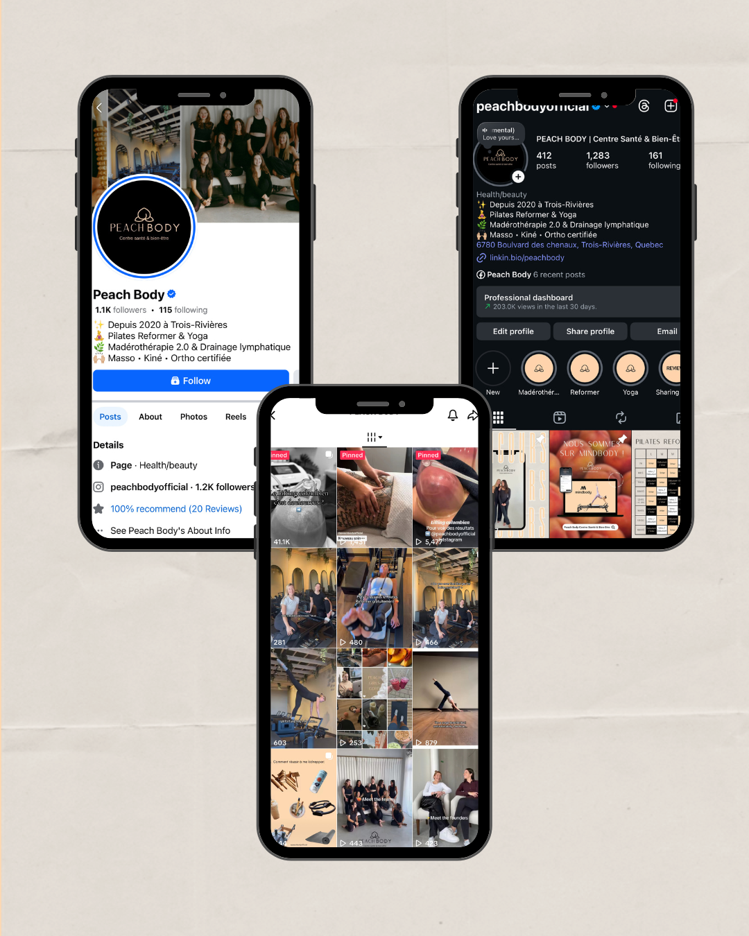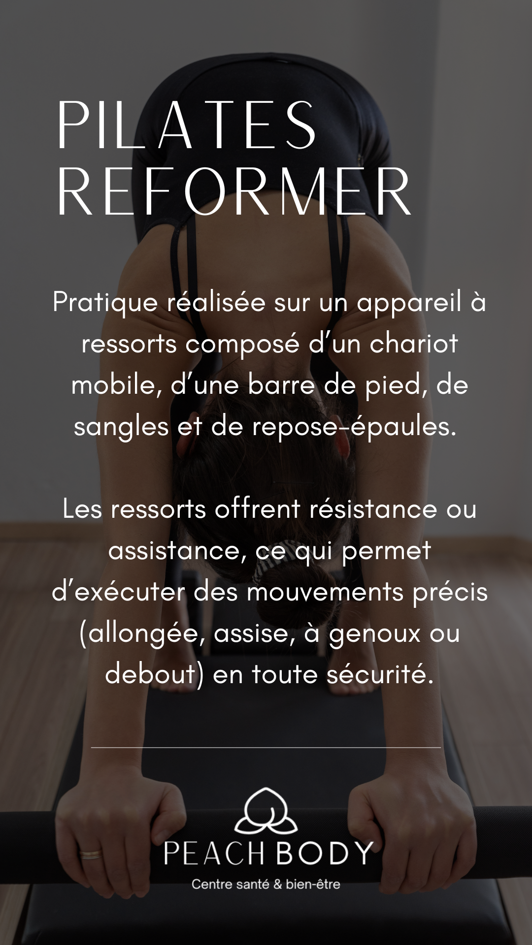 Peach Body est un centre bien-être à Trois-Rivières dédié aux femmes : Pilates Reformer & Mat, yoga, drainage lymphatique, massothérapie, madérothérapie et kinésithérapie.